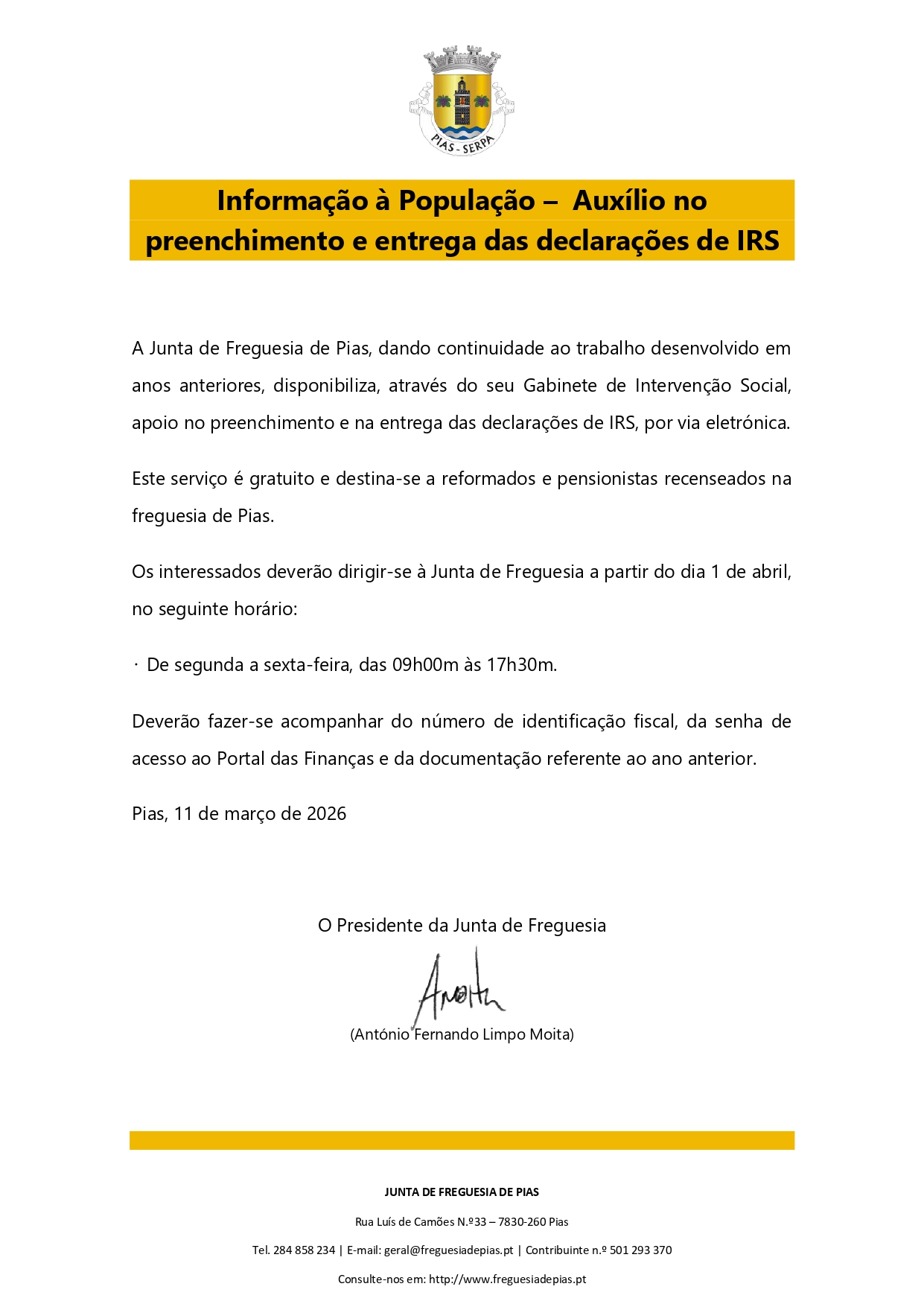 Data: 11/03/2026 / Autor: Freguesia de Pias