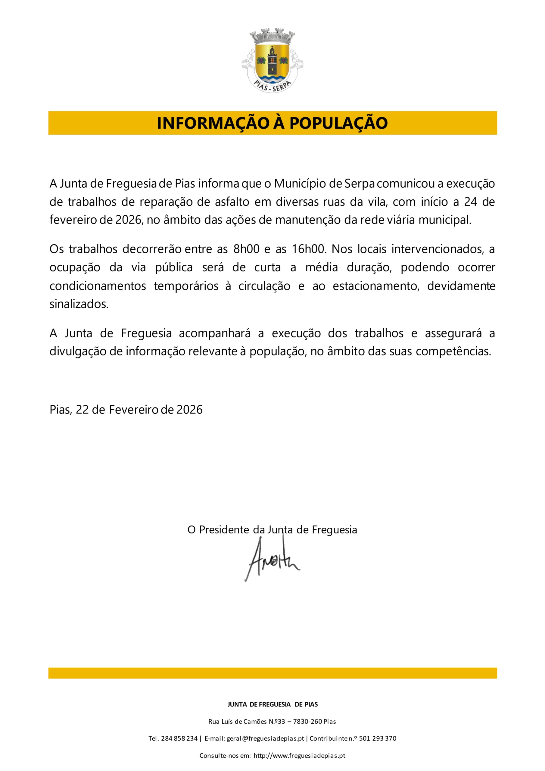 Data: 22/02/2026 / Autor: Freguesia de Pias