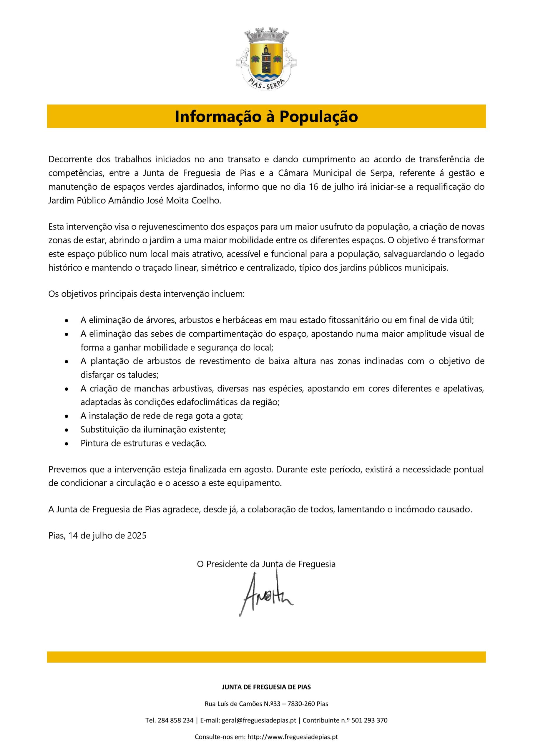 Data: 14/07/2025 / Autor: Freguesia de Pias